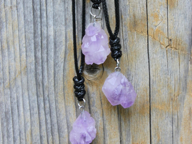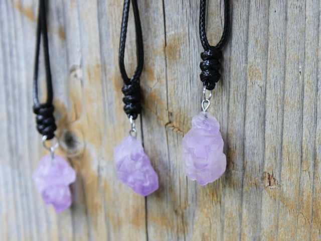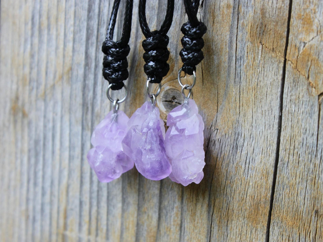 Dein Amethyst Rohstein Anhänger: Ein einzigartiges Naturwunder für innere Ruhe. Getragen an einem schwarzen, verstellbaren Band. Jeder Amethyst ist unbehandelt und spendet Harmonie & Klarheit. Hinweis: Auswahl zufällig, Abweichungen vom Foto möglich. Trage ein Stück reine Erde nah am Herzen.