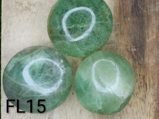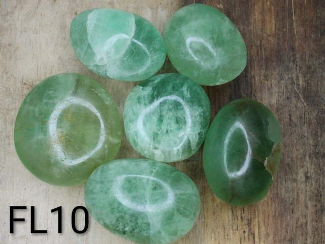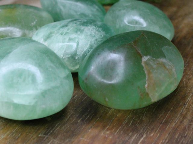 Hellgrüne Trommelsteine aus Fluorit.