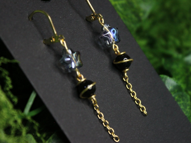 Edelstahl Ohrringe mit süßem Planeten aus Blaufluss-Perlen in Kombi mit Glasperlen