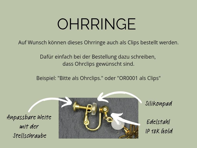 • bequemer Ohrringverschluss (auch als Ohrclip verfügbar, siehe letztes Foto)