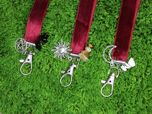 Sonne mit Amazonit, Mond mit Howalith und Pentagramm mit Obsidian.